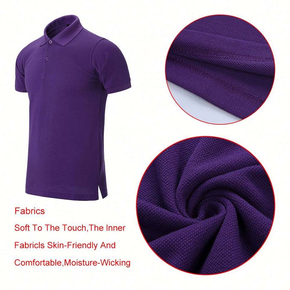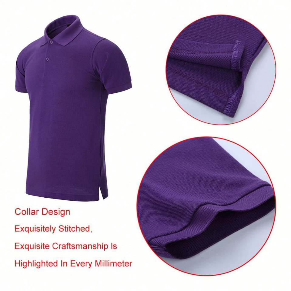 Design Customized Purple for Polo Shirt with Big Size Flower Patch Logo Print 100% Cotton High Quality Training Shirt Ready to