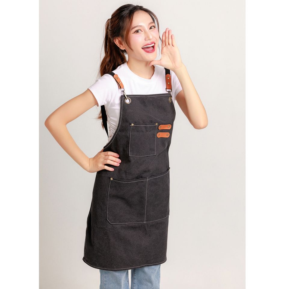 Delantal de cocina de moda para mujer, espalda cruzada de uñas divertida con bolsillos, Lino de algodón personalizado para jardinería y cocina