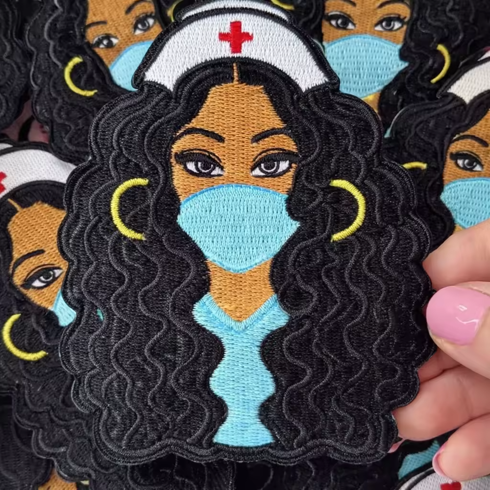 Parche bordado con diseño de dibujos animados, termoadhesivo para ropa, troquelado, con diseño de chica negra, personalizado, bordado al por mayor