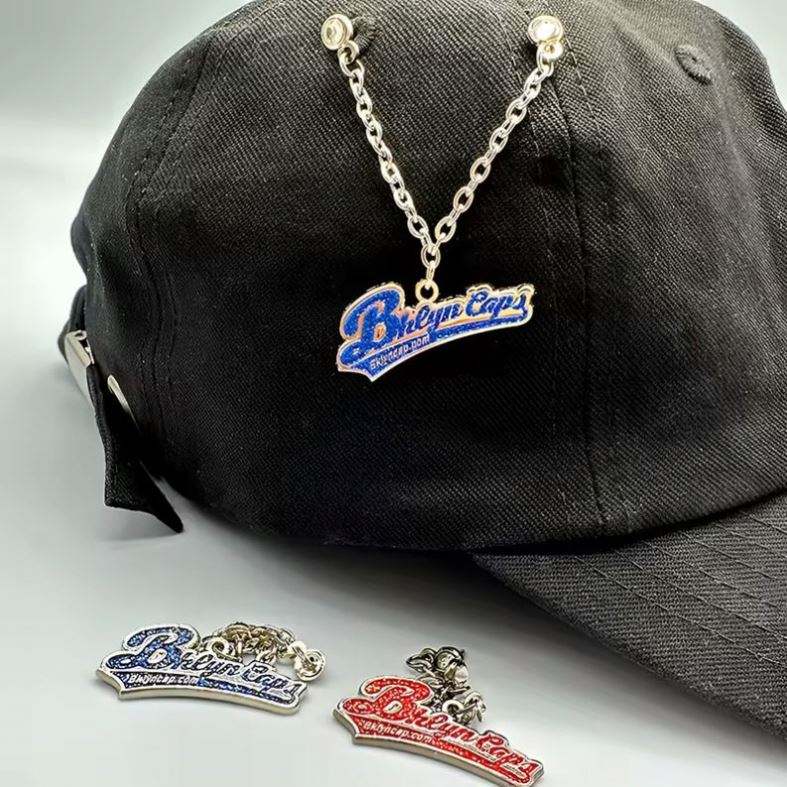 Clips para sombrero de diseño de moda, de metal con esmalte suave y logotipo personalizado, y pin de cadena para sombrero de metal inoxidable con esmalte
