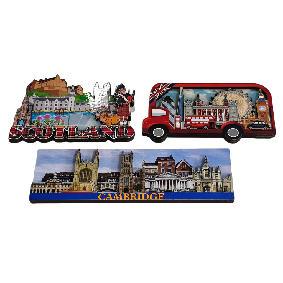 Diseño de Última Generación, Imanes de Madera para Refrigerador con Patrones Personalizados al por Mayor, Recuerdos de Ciudades Escocesas en 2D o 3D