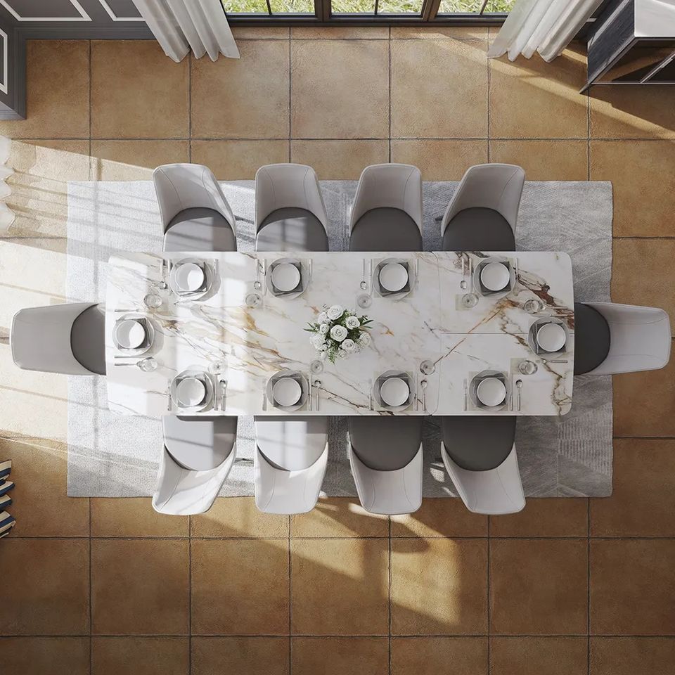 Diseño moderno extensible al aire libre juego de mesa de comedor muebles de comedor mesa y sillas para 12 personas