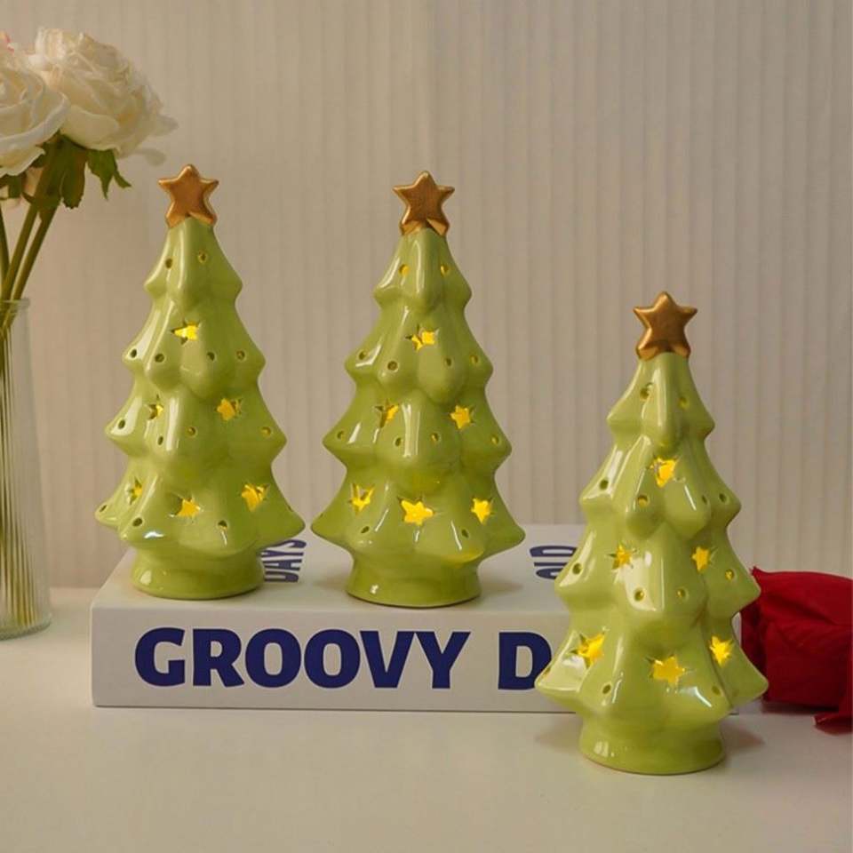 Árbol de Navidad de Cerámica Verde con Luces, Decoración de Mesa, Novedad de Diseño, Fábrica de Árboles de Navidad