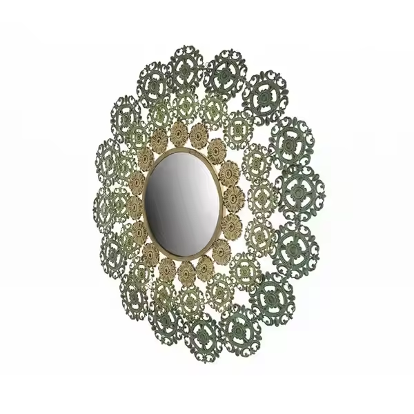 Espejo de pared de Metal chapado redondeado de diseño, Marco colgante de arte de pared de estilo único para sala de estar, Navidad
