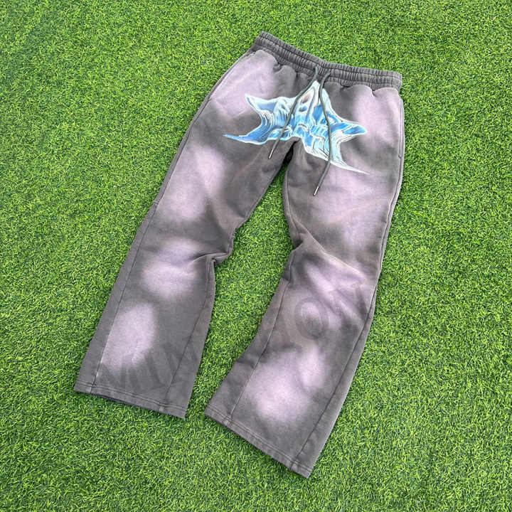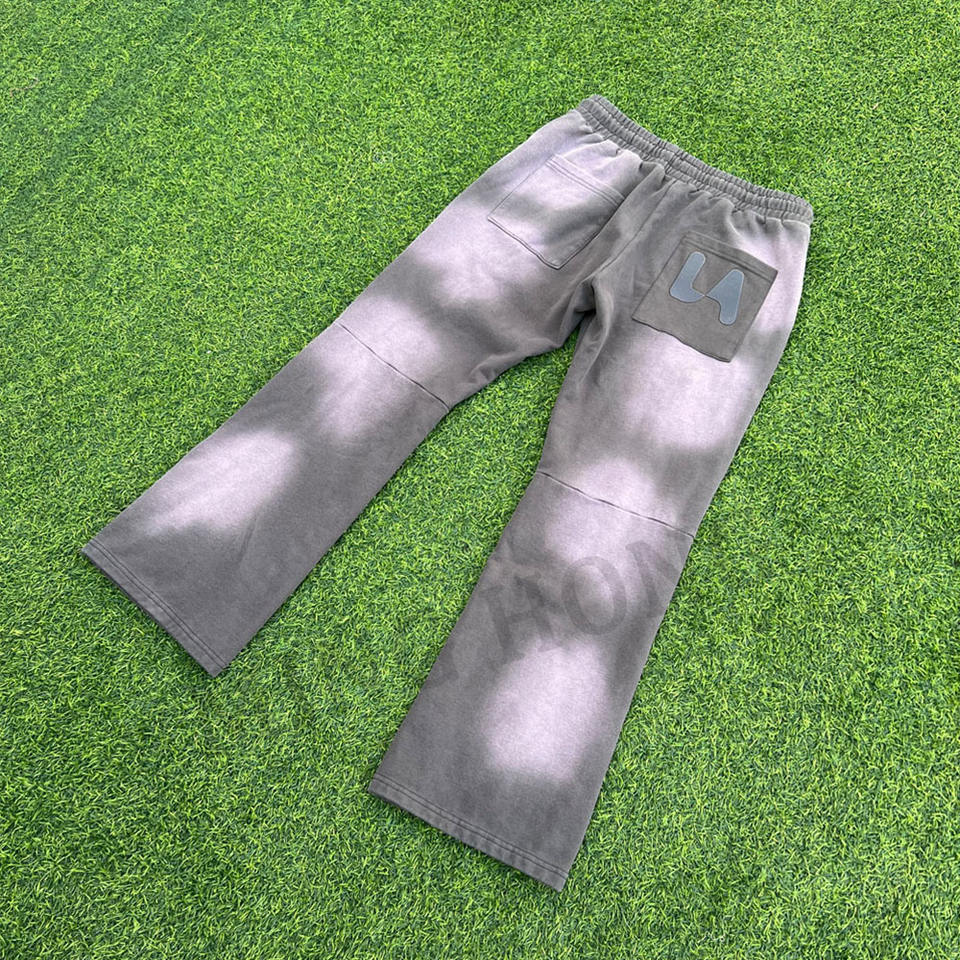 Design Street Style Sun Fades Pantalones de chándal de gran tamaño Dtg Print Logo Pantalones de chándal acampanados lavados con ácido
