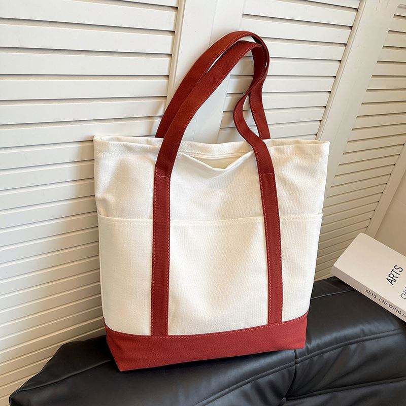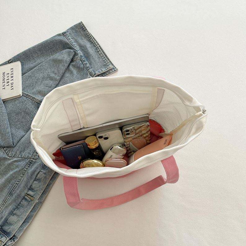 Bolsa de Lona Personalizada, Reutilizable, con Diseño Elegante Tipo Tote, Bolsillo Externo y Cierre de Cremallera Superior, para Artículos Esenciales Diarios