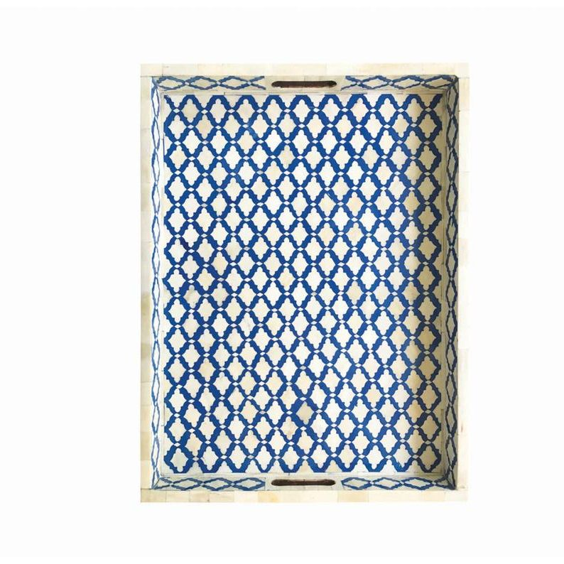 Elegante bandeja de servir con incrustaciones de hueso, tamaño personalizable, hecha a mano con hueso natural en India.