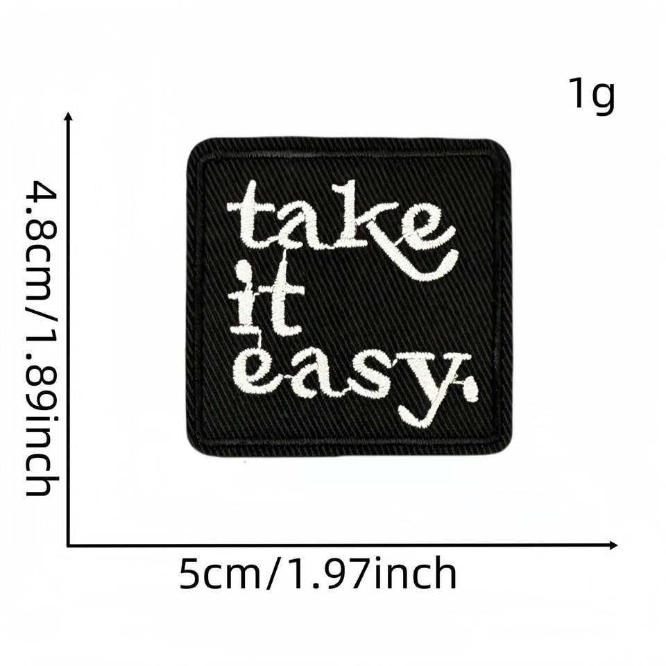 Parche Bordado Termoadhesivo Personalizado con Diseño de Letras del Alfabeto 'Take It Easy', Tamaño Pequeño, Forma Irregular, para Ropa