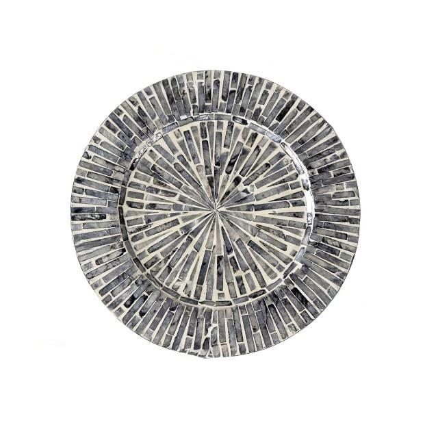 Placa de cargador con incrustaciones de hueso de madera de diseño, forma redonda de Calidad exclusiva, muestra debajo de la placa