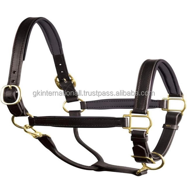 Esign your propio caballo Halter personalizado doble capa triple cosido lack nglish caballo Halter con doble hebilla de corona