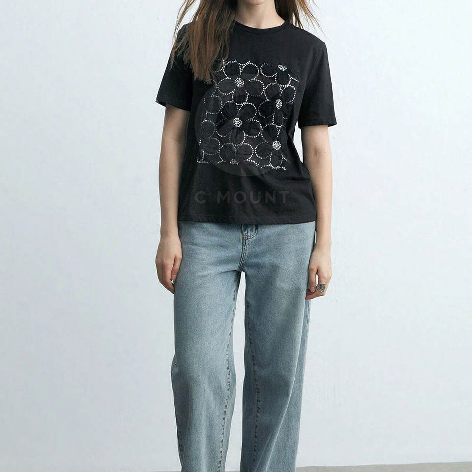 Diseñe su propio logotipo Mujeres Rhinestone Camisetas Fitness Wear Último diseño Mujeres Rhinestone Camisetas