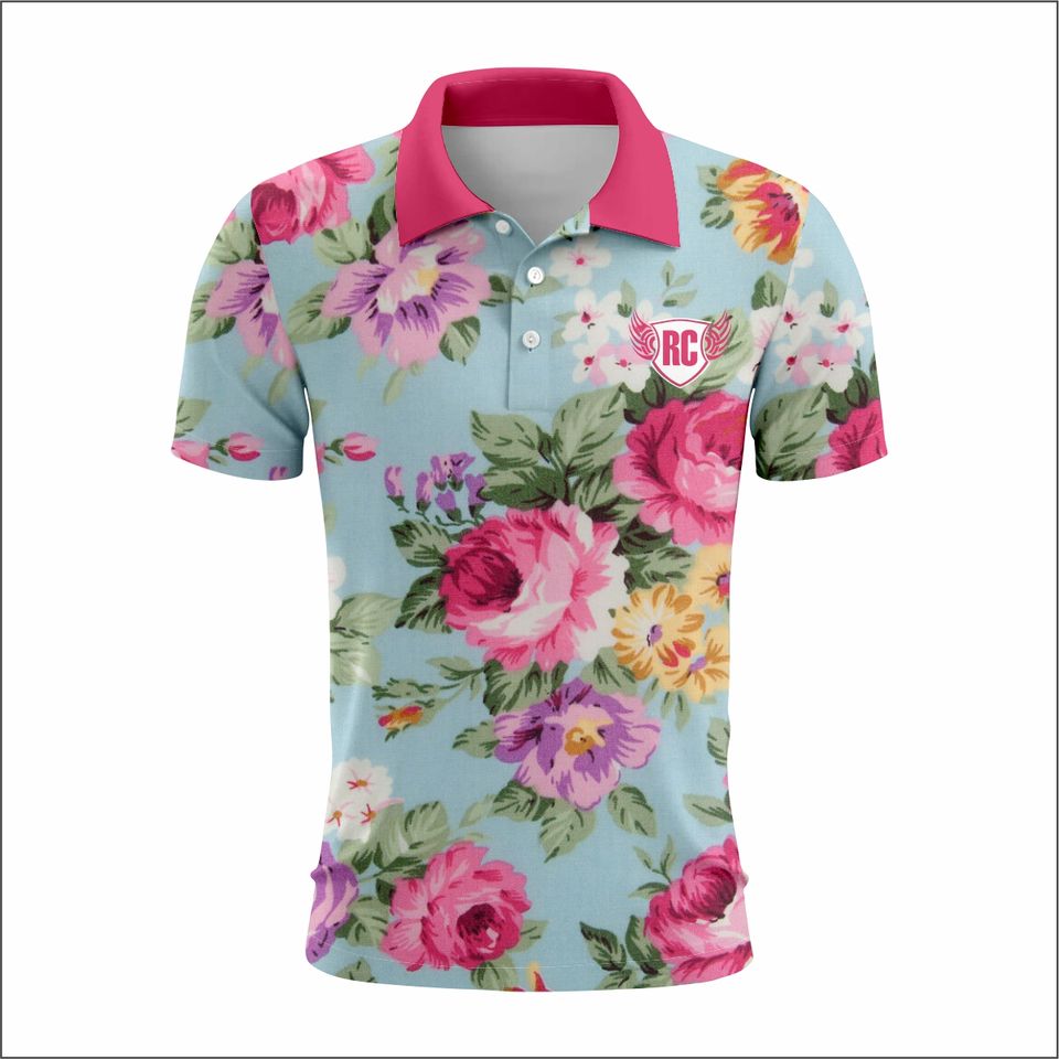Polo de Golf de poliéster 100% personalizado para hombre, camisa de secado rápido ajustada, transpirable, estampado completo, diseño Floral, informal, Manga corta Cu