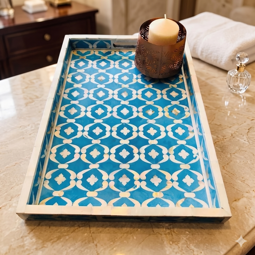 La mejor bandeja de Incrustaciones de nácar elegante y única hecha a mano de La India Bandeja de servicio elegante y única con diseño de hueso