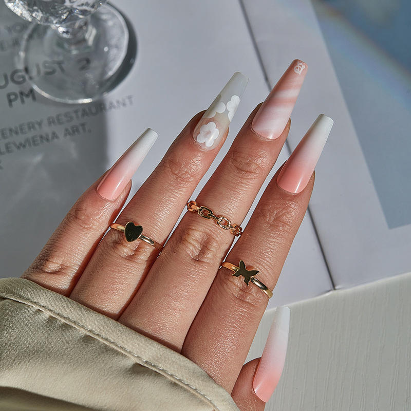 Diseño de uñas postizas reutilizables Prensa en las uñas Uñas artificiales Venta caliente Lujo Corto Acrílico personalizado con pegamento para el dedo de la mujer