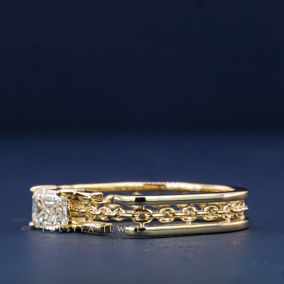 Anillo de Diamantes de Laboratorio en Oro de 14K para Hombre, Diseño Minimalista, con Piedras de Aspecto Premium, para Compromiso o Boda