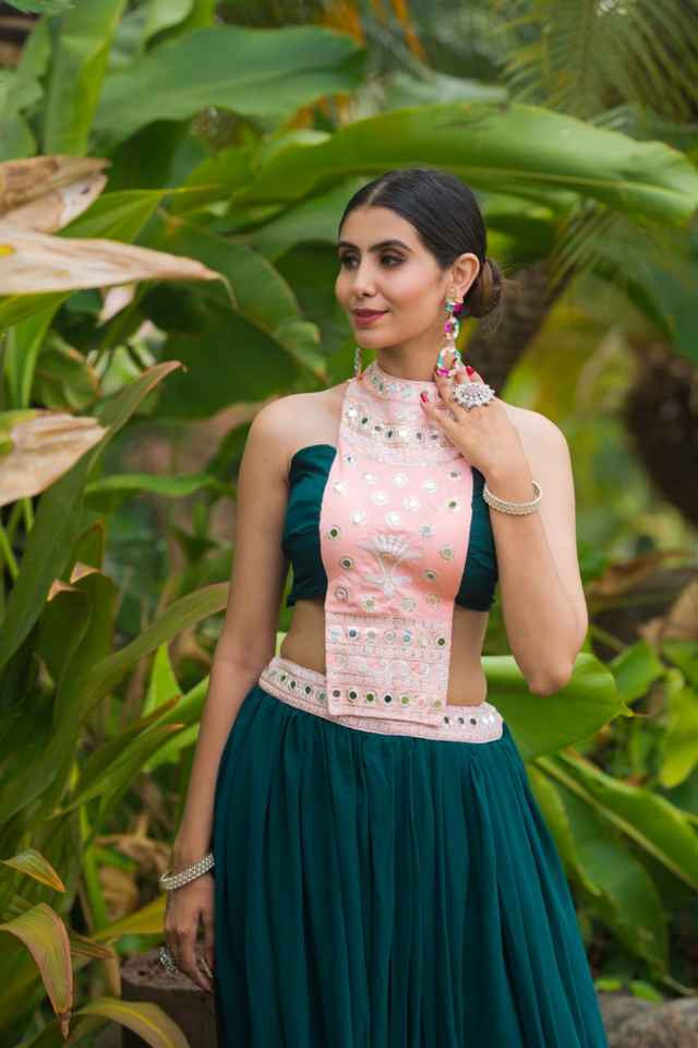 Diseñador 2025 Summer Ready-to-Wear Crop-Top Lehenga Choli Set para ocasiones de fiesta