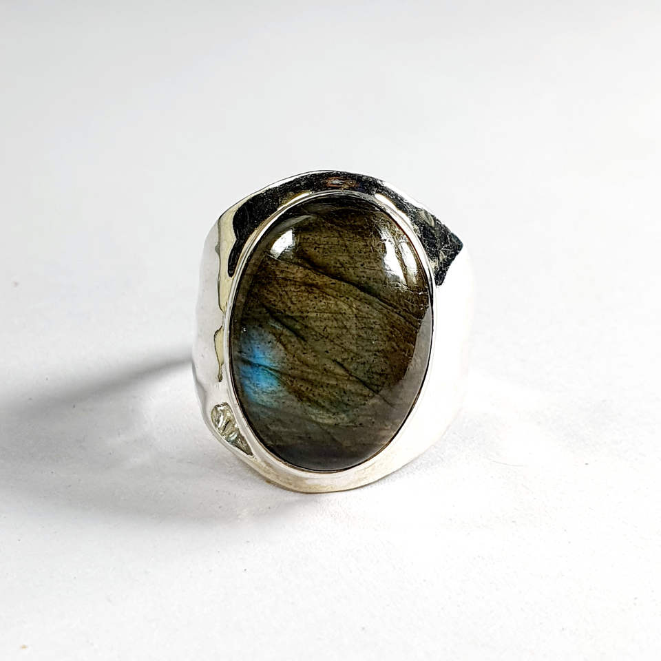 Anillo de Labradorita de Diseño, 7.7 Gramos, con Baño de Oro de 18K, Engaste de Bisel, Patrón de Ojo Retro, Regalo para Él/Ella, Aleación/Cobre