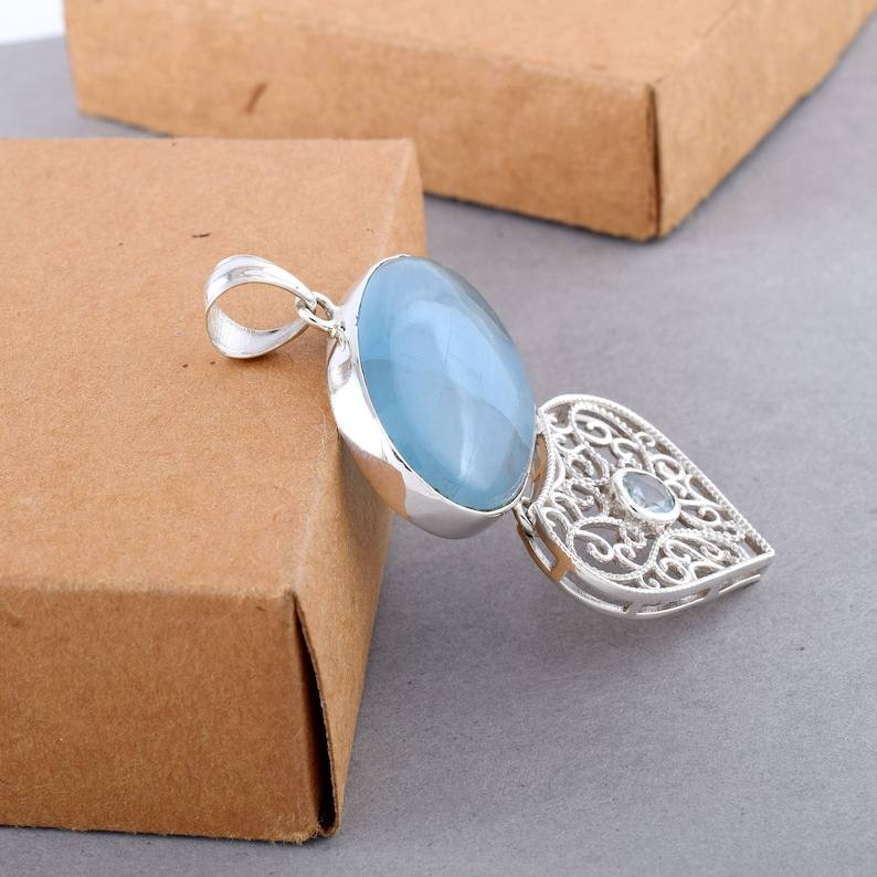 Diseñador 925 plata esterlina aguamarina colgante hecho a mano mujer collar de plata joyería aguamarina plata colgante regalo de Navidad