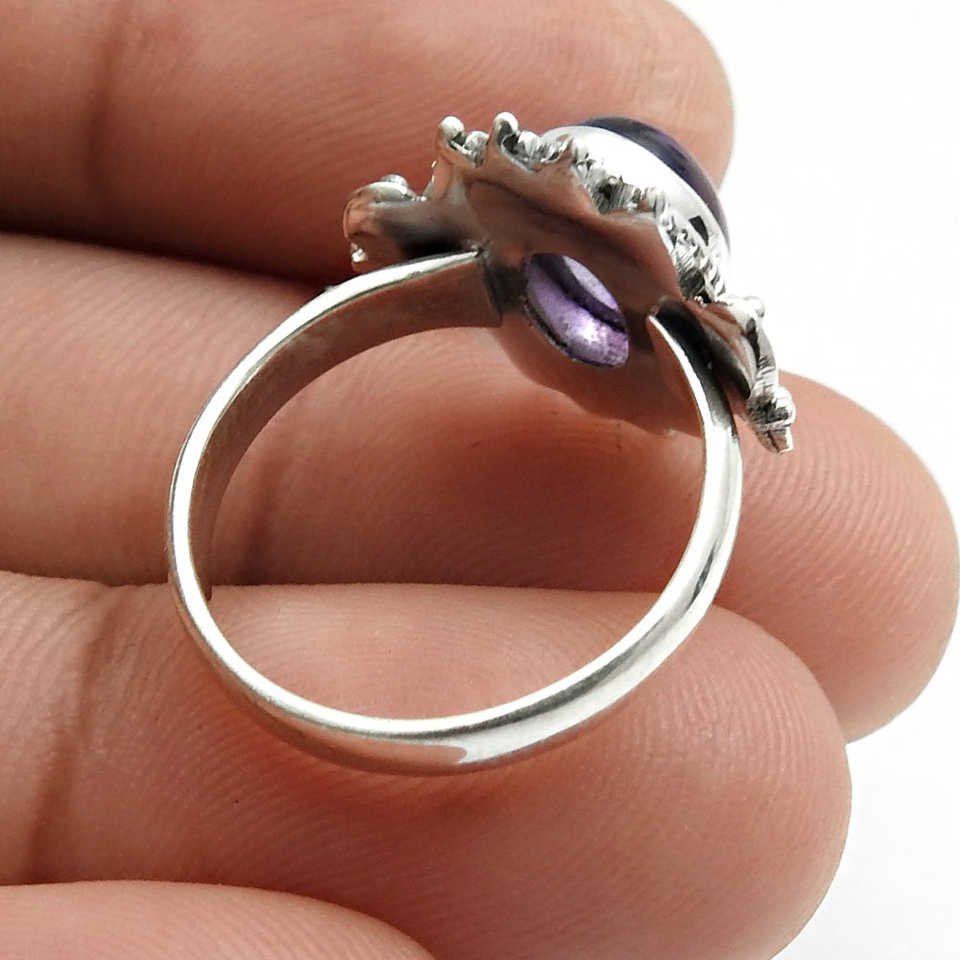 Anillo de Plata de Ley 925 de Diseño, Anillo Hecho a Mano con Gema de Amatista de Corte Ovalado, Anillo de Estilo Boho con Bonito Diseño a Precio de Mayoreo