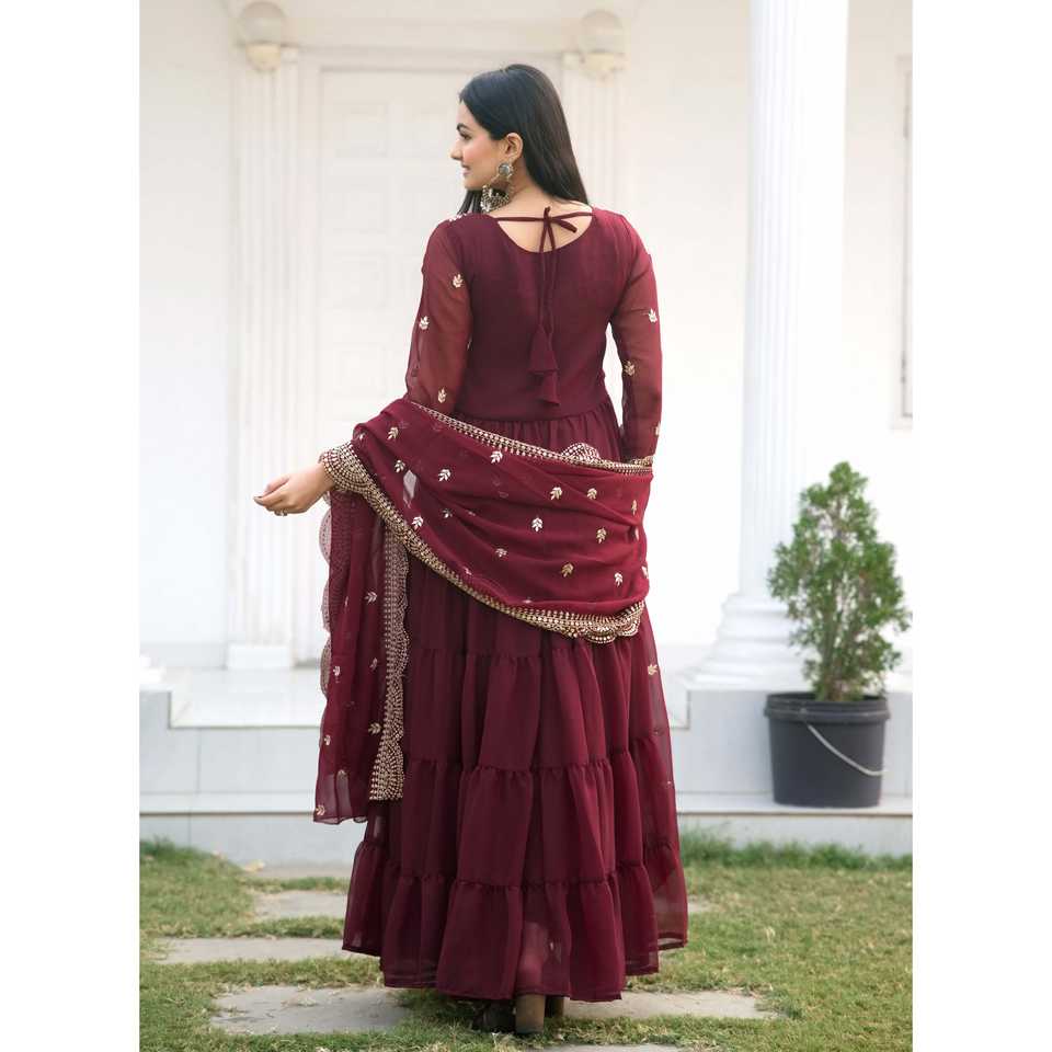 Vestido de Georgette con Diseño en Línea A y Bordado de Lentejuelas, Elegante Vestido con Bordado de Lentejuelas