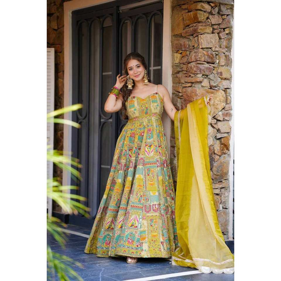 Vestido de diseñador Anarkali y Dupatta para fiesta-Talla XS
