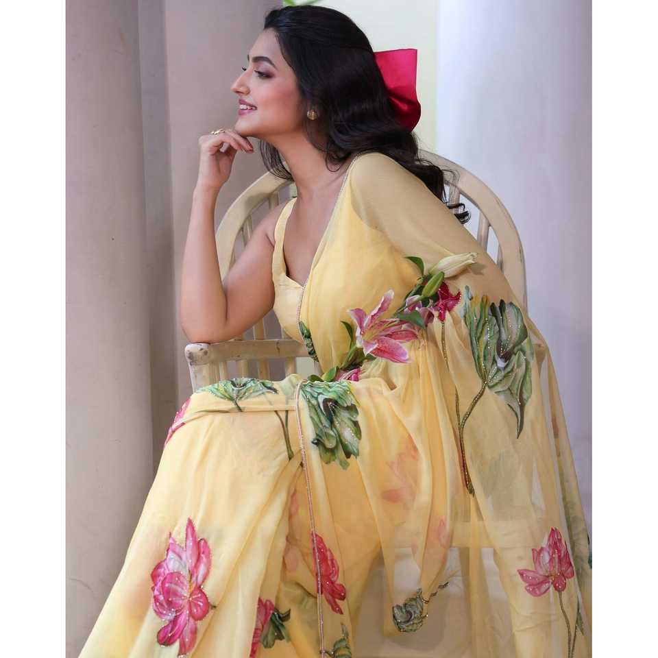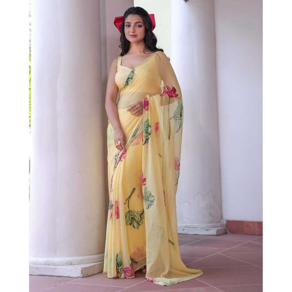 Diseñador hermoso floral hecho a mano desgaste del partido Sari para la carrera de vestir
