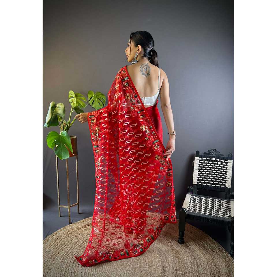 Hermoso Sari de Seda de Diseñador con Bordado para Bodas