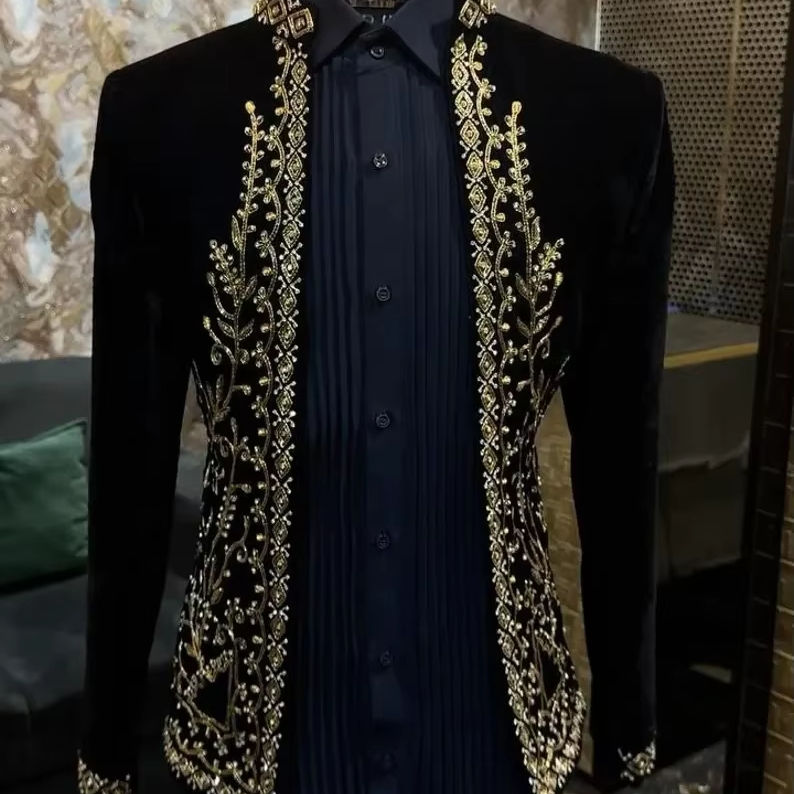 Diseñador Negro hombres trajes novio boda esmoquin hecho a medida 2 piezas fiesta de graduación traje ajustado