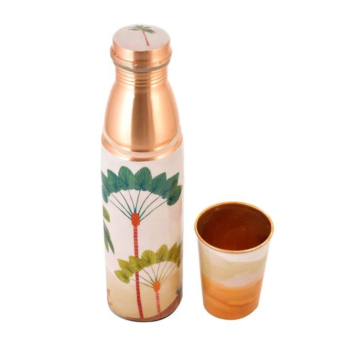 Juego de Botella y Vaso de Diseño para el Hogar y la Oficina, Botella de Agua de Cobre Puro con Estampado de Postre de 950 ml con 1 Vaso de 250 ml
