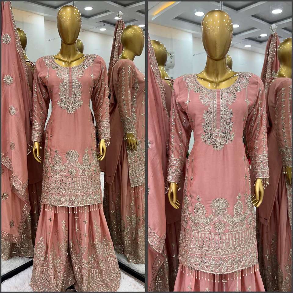 Nombre del Producto:Top Sharara de seda Chinon con bordado de lentejuelas y Dupatta