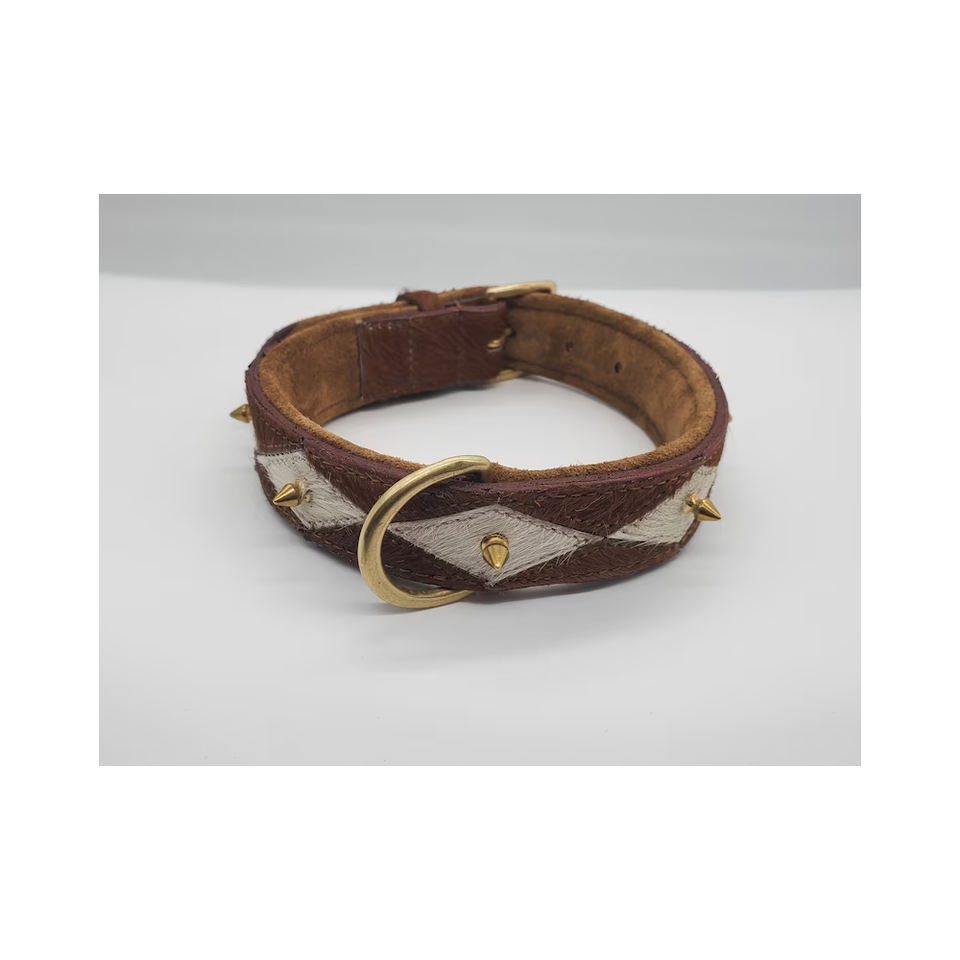 Designer Cowhide Handmade Rustic Dog CollarNúmero de Modelo