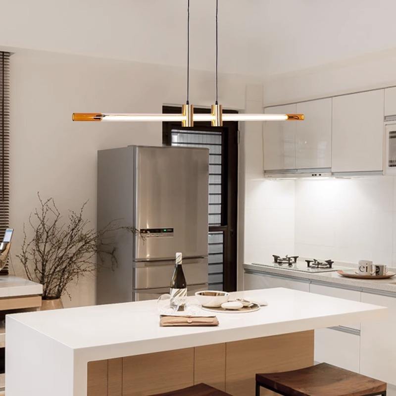 Lámpara Colgante Lineal Creativa de Diseño, Estilo Nórdico Minimalista para Restaurante, Sala de Exposiciones y Hotel, Barra Larga, Luz Blanca Cálida