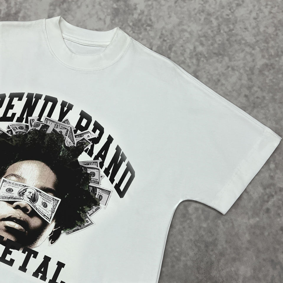 Camiseta con estampado de hombros caídos personalizada de diseñador, ropa de calle, camisetas gráficas informales, Camiseta de algodón de gran tamaño de alta calidad