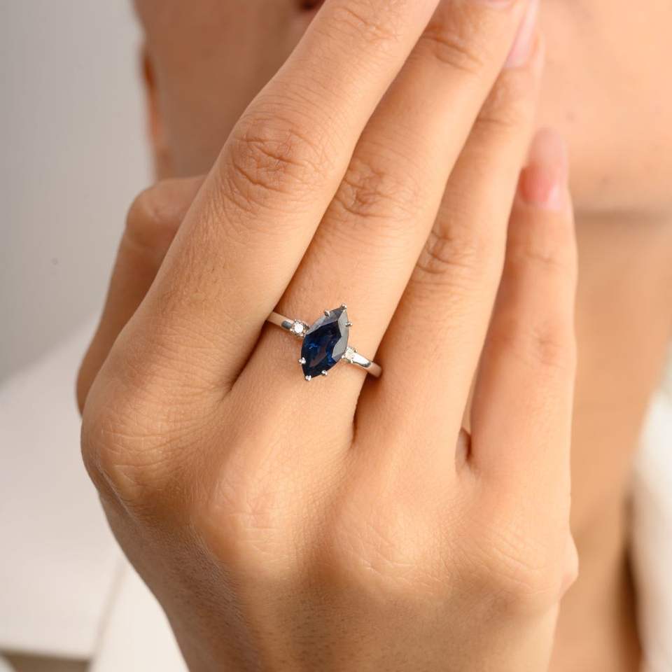 Piedra:Zafiro azul natural y diamante