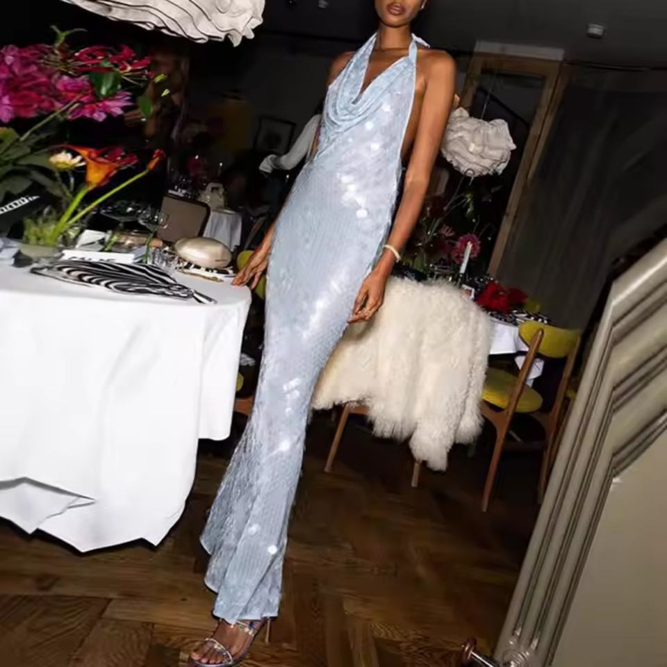 Vestido de Noche Elegante y Dulce de Alta Calidad, Diseño Personalizado, con Tirantes Finos, Cintura Ajustada y Lentejuelas Brillantes para Mujer