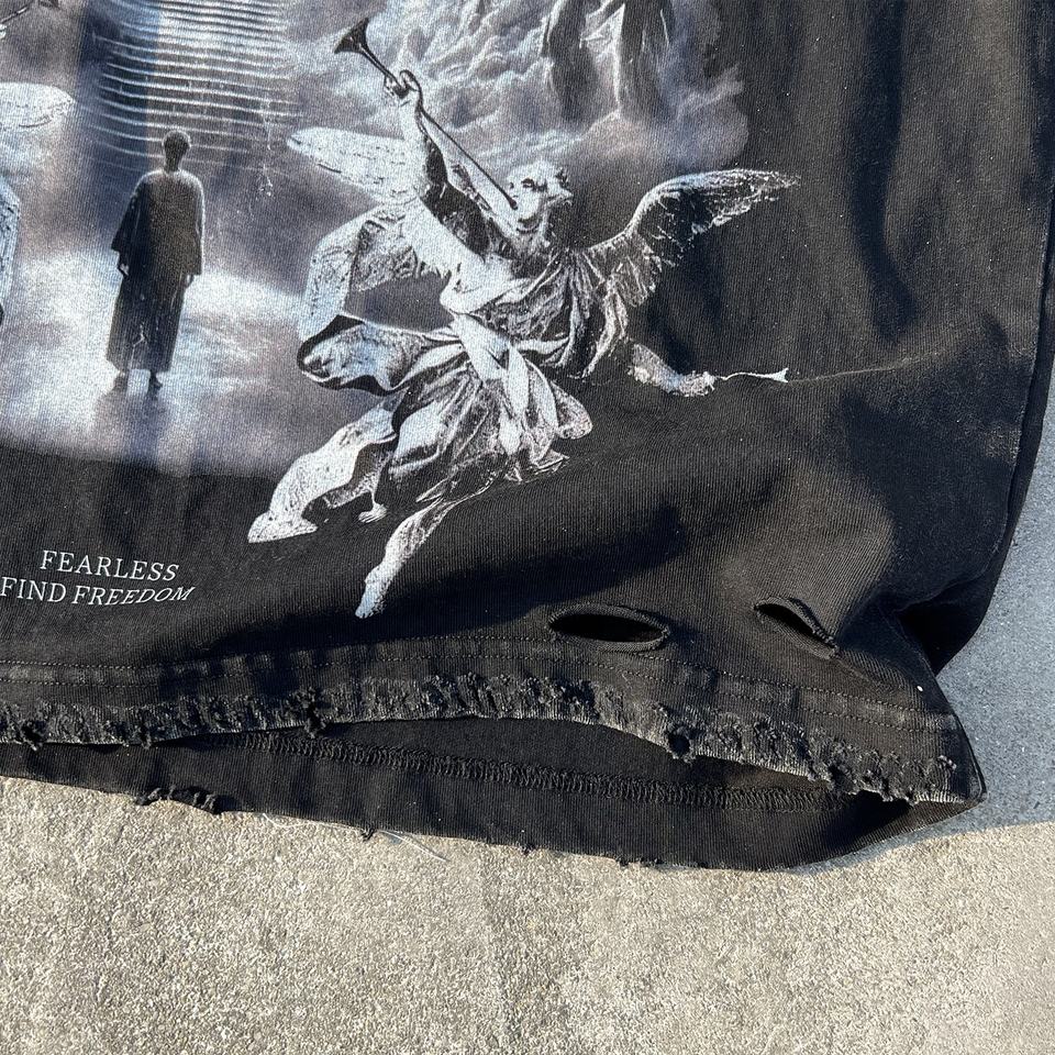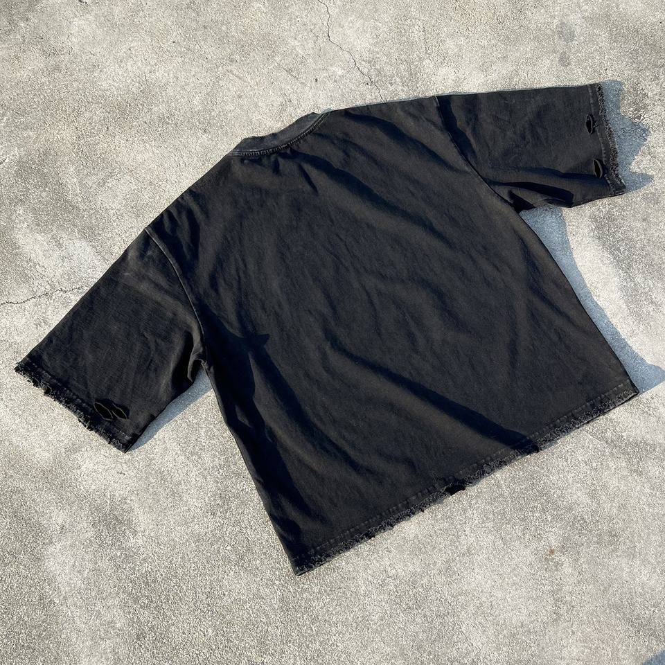 Camiseta Negra de Diseño con Efecto Desgastado, Estampado Vintage, de Algodón, Estilo Oversize, Fabricante de Camisetas con Lavado Ácido