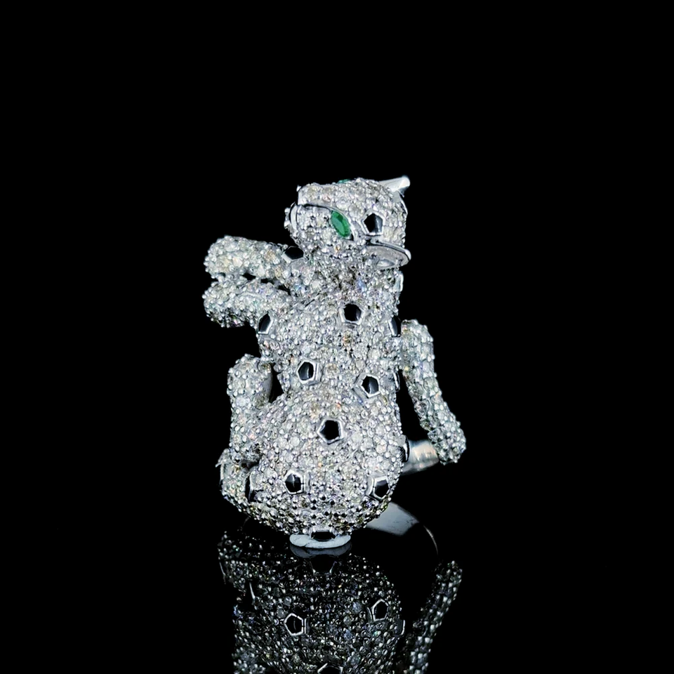 Product name:Animal Inspired Real Natural Diamond Panther Ring in 14K White Gold