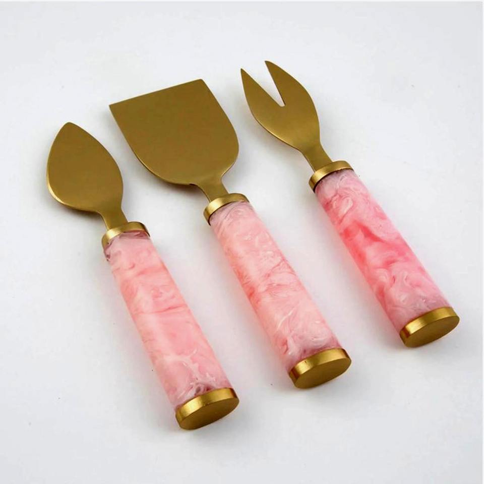 Juego de cubiertos de diseño para comedor, plateados, con mango esmaltado, utensilios para queso