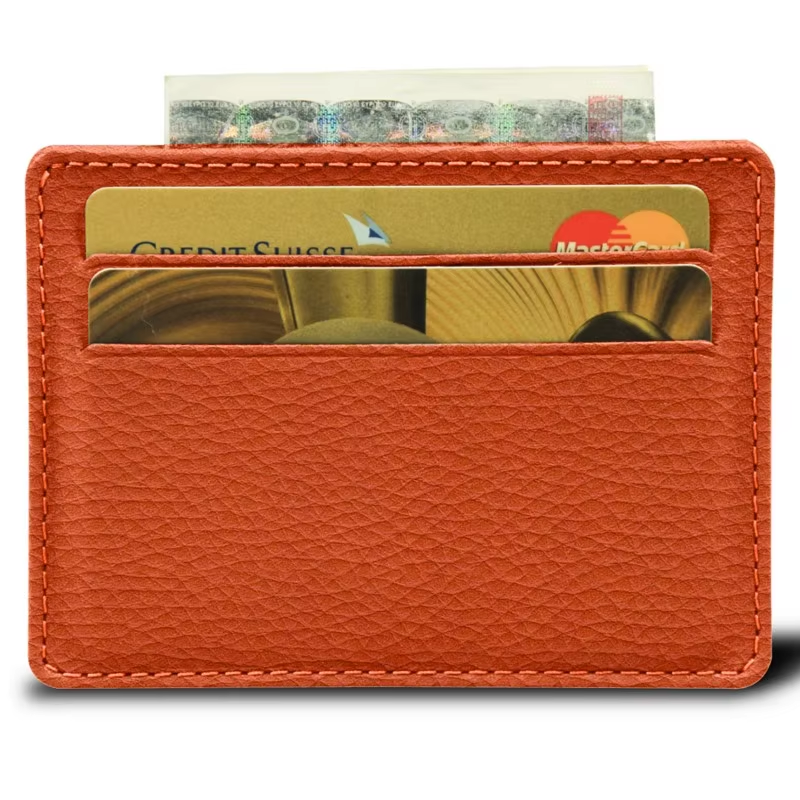 Diseñador directo de fábrica personalizado PU cuero tarjetero forro de satén cierre abierto RFID característica corta sublimación carteras
