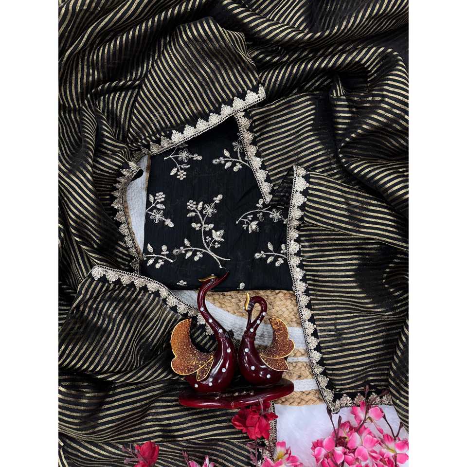 Sari con Bordado de Diseño Dori, Borde de Encaje, Tela de Bordado Premium