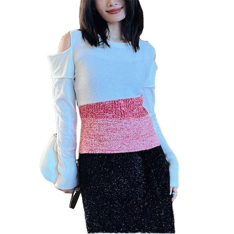 Suéter de cuello redondo para mujer elegante de diseñador, Tops de punto de invierno para suéter de manga larga cómodo y elegante para mujer
