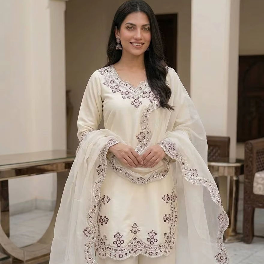 Conjunto de Kurti y Palazzo Bordados de Diseñador con Dupatta | Traje Étnico Festivo y de Fiesta para Mujer