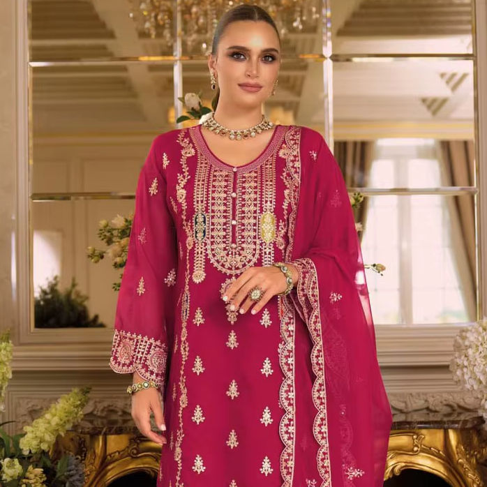 Conjunto de Salwar Kameez Tradicional Bordado de Diseñador para Mujer, Estilo Pakistaní, Ropa Étnica para Fiestas y Bodas, Secado Rápido