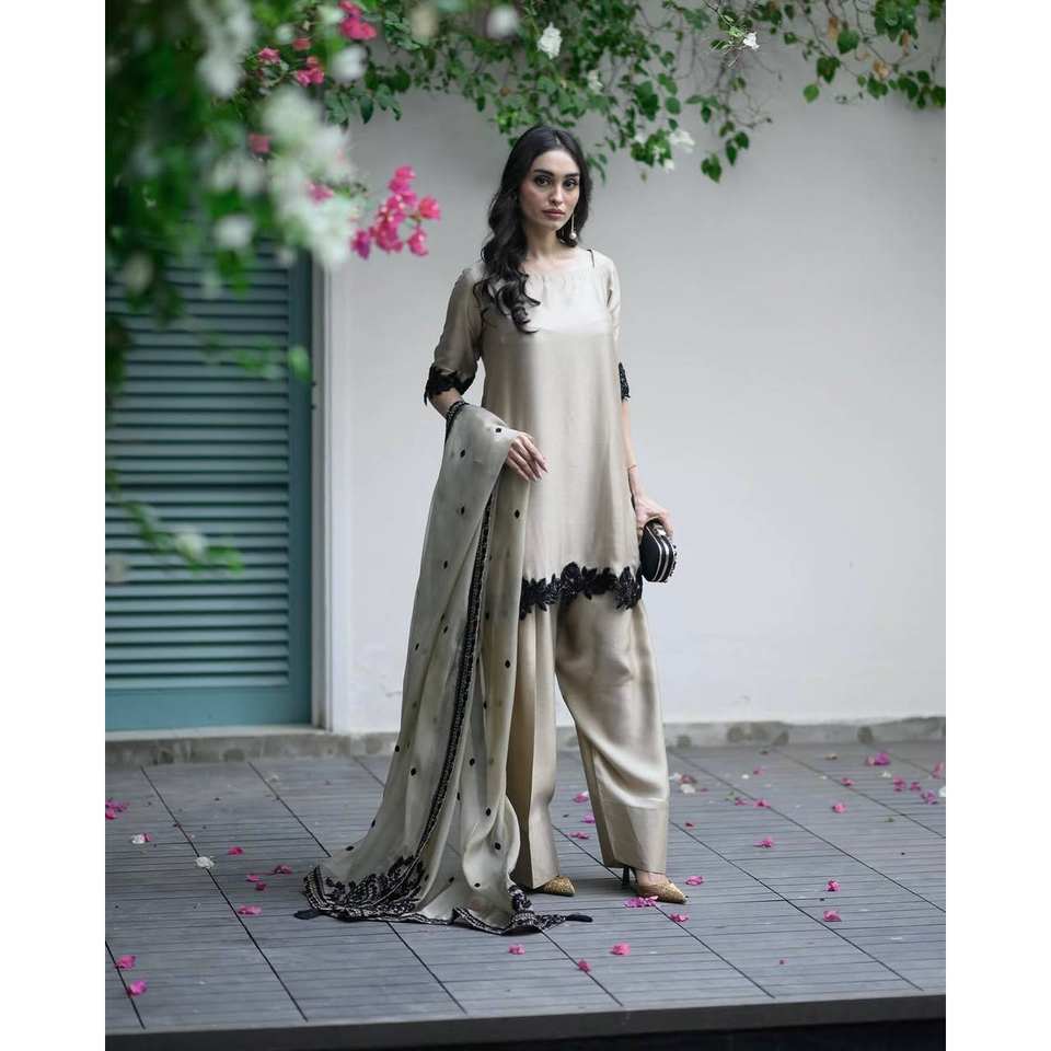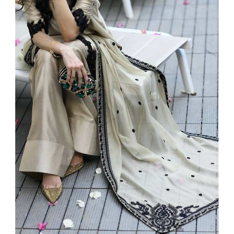 Conjunto de chal bordado de diseñador: top, pantalón y dupatta con trabajo de lentejuelas