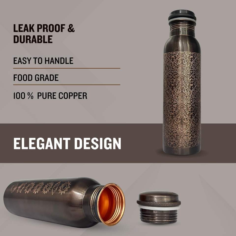 Botella de Cobre Grabada de Diseño con Vasos de 300 ml, Botella de Cobre Puro a Prueba de Fugas con Juego de 2 Vasos, Agua de Cobre Premium