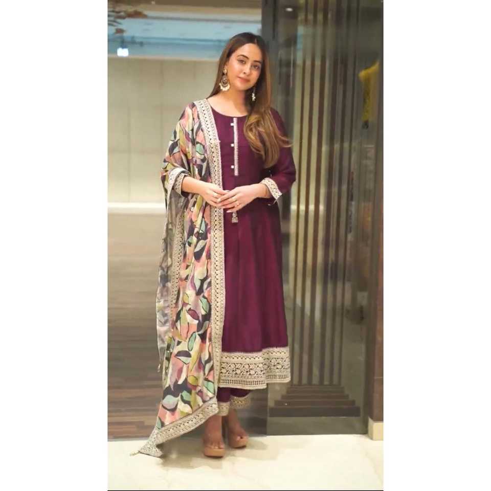 Vestido de noche de diseñador Vestido de trabajo de secuencia de bordado pesado con apariencia de fiesta Dupatta