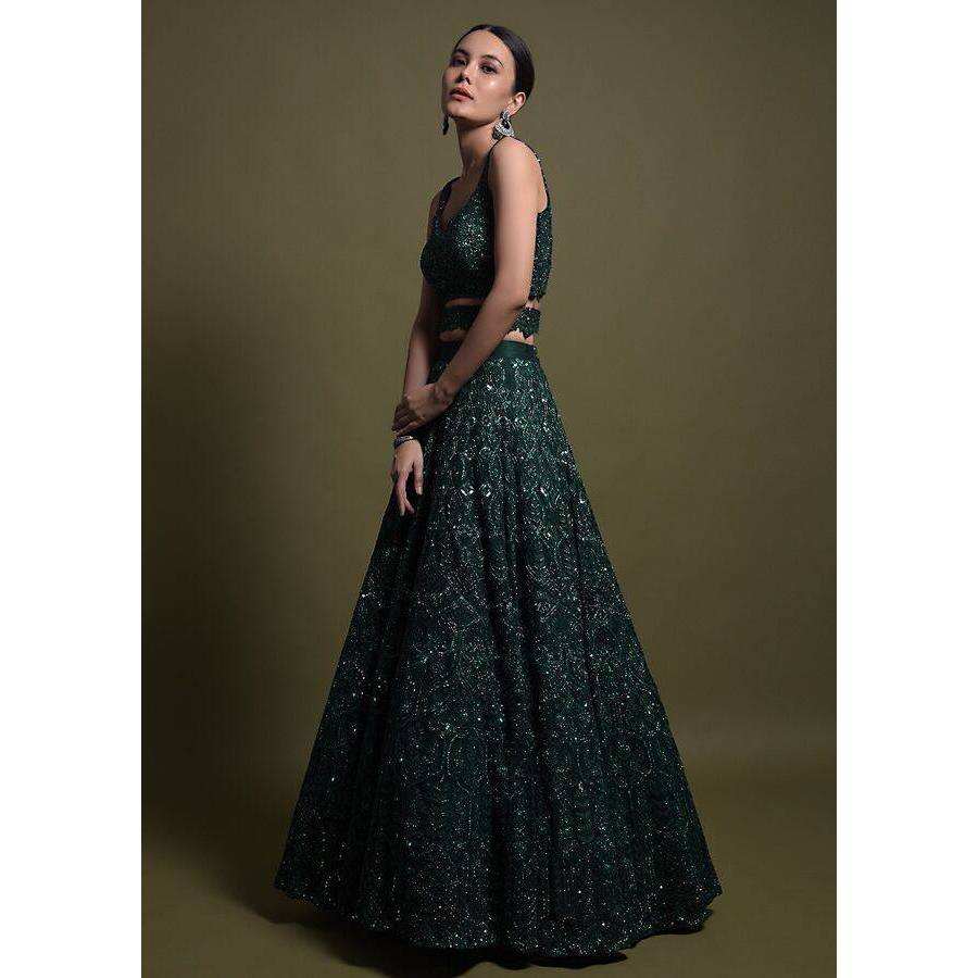 Vestido de noche de diseñador Sequin Thread Work Lehenga Choli para fiestas
