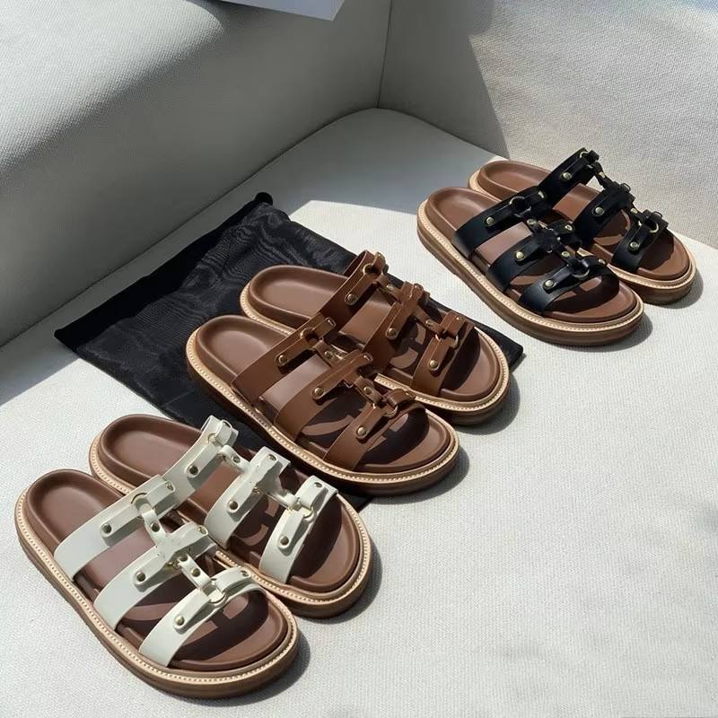 Zapatillas de lujo famosas de diseñador, sandalias de plataforma de cuero estilo remache romano, zapatillas deportivas informales de verano, zapatillas deslizantes para hombres y mujeres