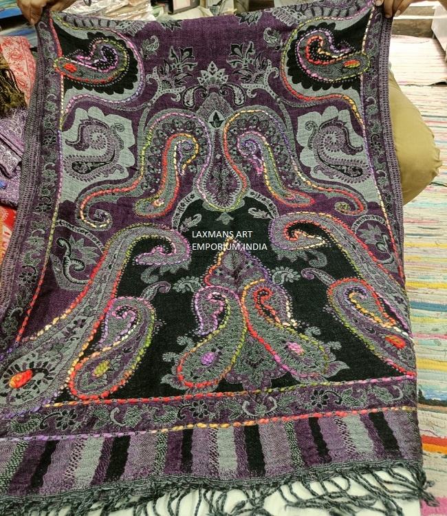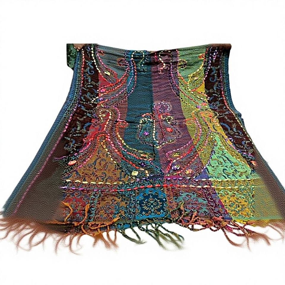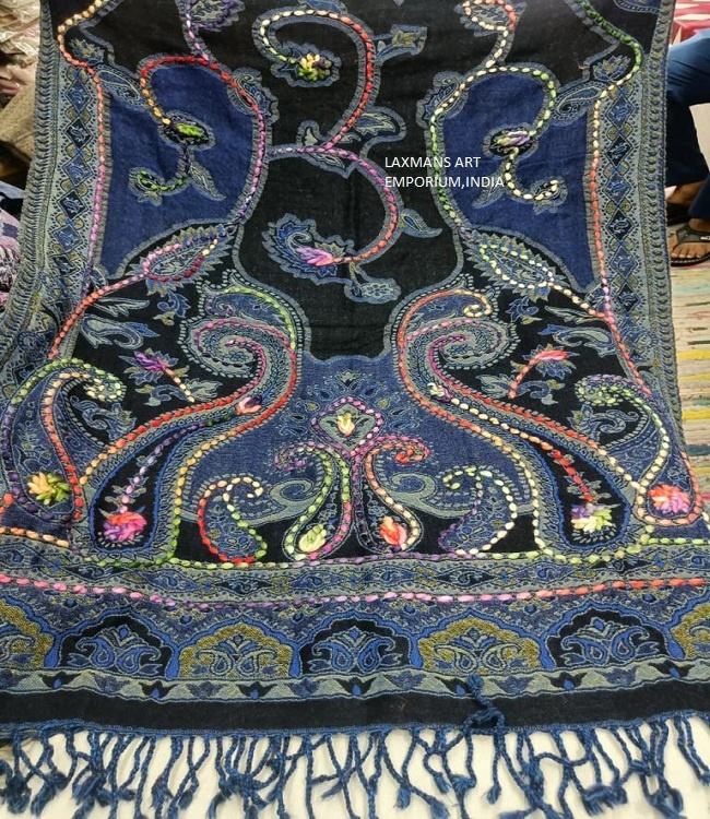 Bufandas de Lana Fina de Diseño con Bordado a Mano, Chales Largos de Moda Unisex 80x200cm para Invierno, Venta al Por Mayor desde India