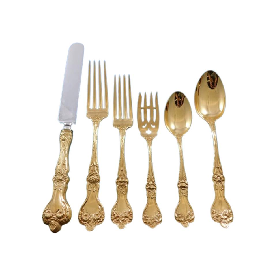 Cubiertos de diseño chapados en color dorado de acero inoxidable, juego de 6 tenedores, cuchara, cuchillo, apto para lavavajillas, cubiertos para uso doméstico en la India